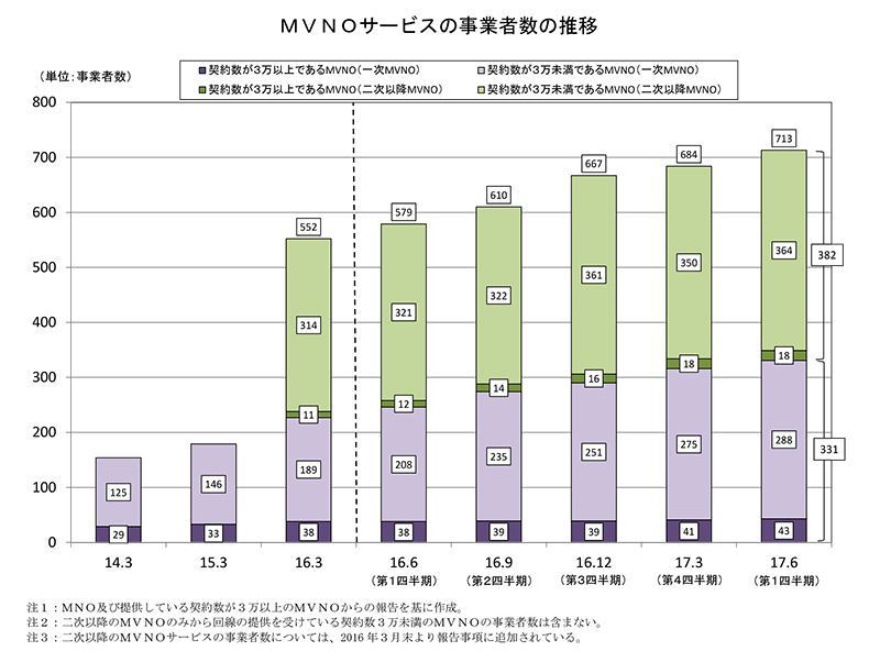携帯・PHS純増数に占めるMVNOの割合は約半数