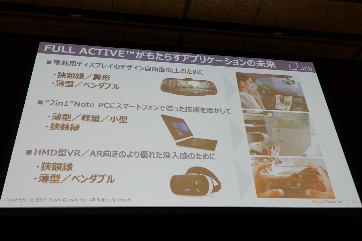 4辺狭額縁の次世代ディスプレイ「FULL ACTIVE」をJDIが披露