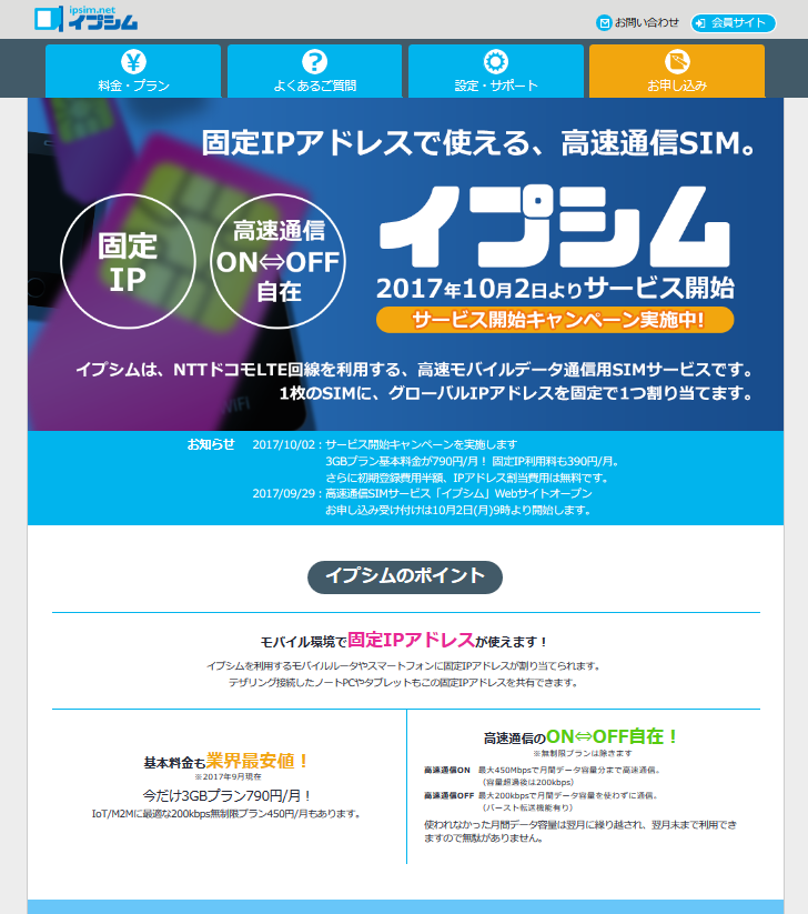 固定IPアドレス付与のSIMカードにプリペイド版「イプシム・プリペイド」