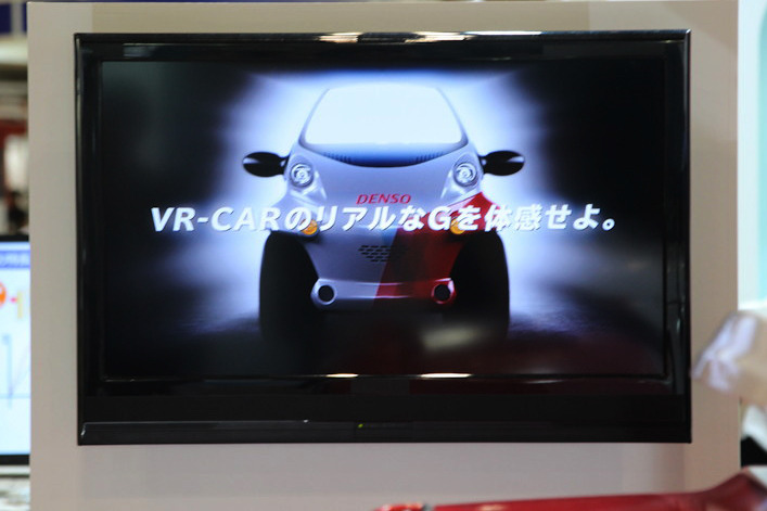 動かず旅行体験ができる「VR-CAR」を展示するデンソー