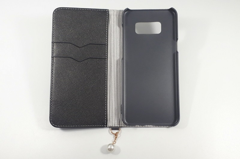 Galaxy S8+ パールチャーム付きブックタイプケース/ブラック