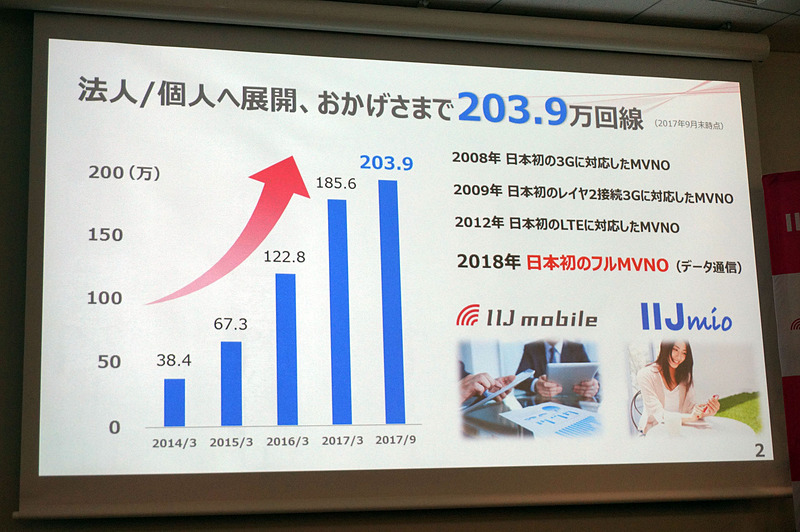 IIJのMVNO回線が200万、来春の「フルMVNO」は予定通り