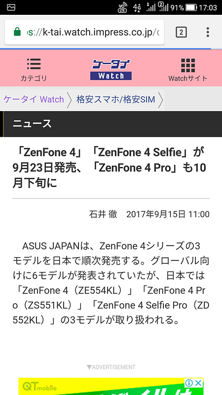 • 「ZenFone 4」「ZenFone 4 Selfie」が9月23日発売、「ZenFone 4 Pro」も10月下旬に