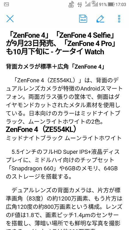 「ZenFone 4 Pro」ミニレビュー(編集部石井)