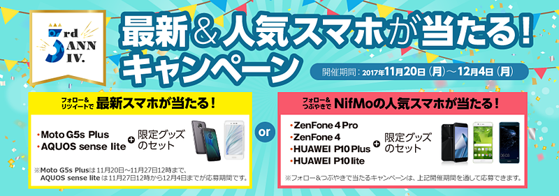 「Moto G5s Plus」が30%オフ、「NifMo」3周年セールのラインナップに追加