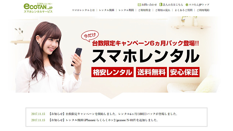 iPhone 5sなら6カ月3600円~、日本テレホンのスマホレンタルサービス