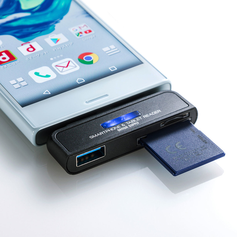 USB Type-C端子のAndroidスマホ向け、コンパクトなカードリーダー