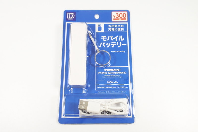 【100均で買えるスマホグッズ】2000mAh 充電式モバイルバッテリー