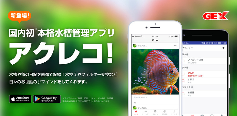 観賞魚飼育の管理や記録に便利なアプリ「アクレコ!」、水槽のジェックスから