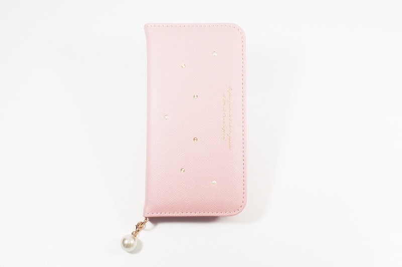 au +1 collection iPhone 8 パールチャーム付きブックタイプケース