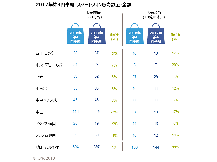 2016年のスマホ世界販売台数は14億1000万台、GfK調査