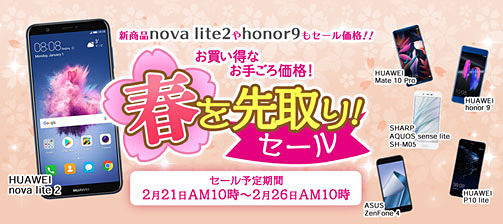 honor9が1万2600円、nova lite 2が8800円、SIM通で決算セール