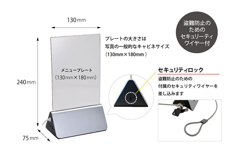 コンセントがないカフェも充電対応に、メニュースタンド型モバイルバッテリー