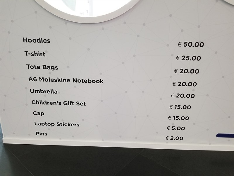 謎のゆるキャラ入り、MWCオフィシャルグッズの販売コーナー