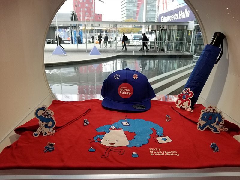 謎のゆるキャラ入り、MWCオフィシャルグッズの販売コーナー