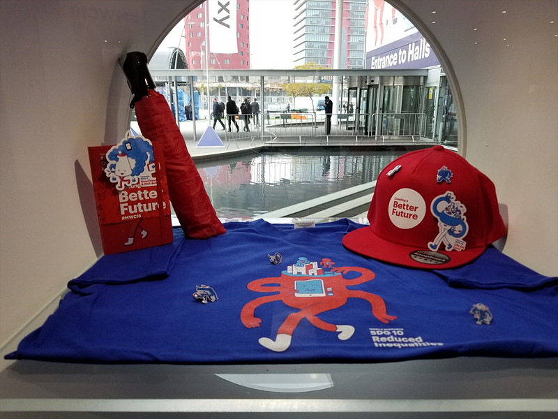 謎のゆるキャラ入り、MWCオフィシャルグッズの販売コーナー