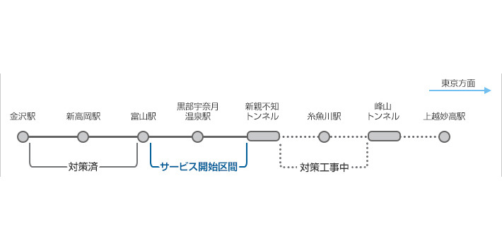 北陸新幹線、糸魚川駅周辺のトンネルが携帯電話のサービスエリアに