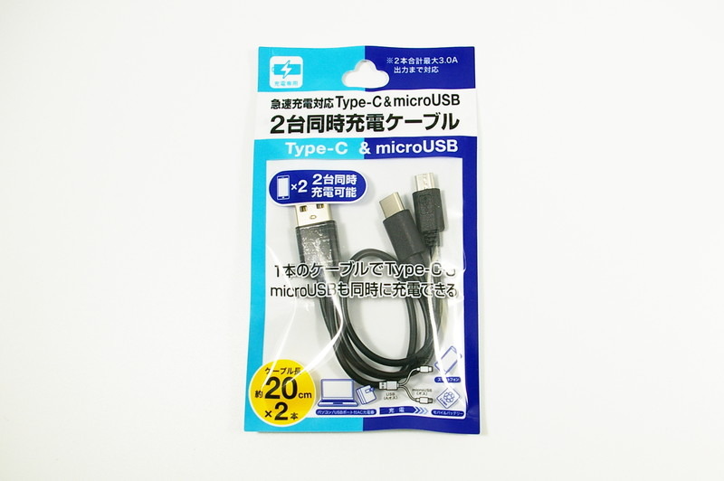 【100均で買えるスマホグッズ】急速充電対応 USB Type-C & microUSB 2台同時充電ケーブル