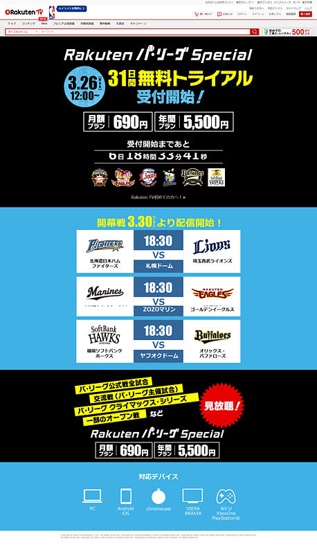 ソフトバンクのスマホでパ・リーグ全試合、大容量プランユーザーの特典