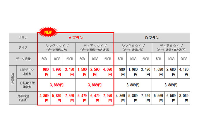「日経電子版+SIM」に20GBコース、既存コースは少し値下げ