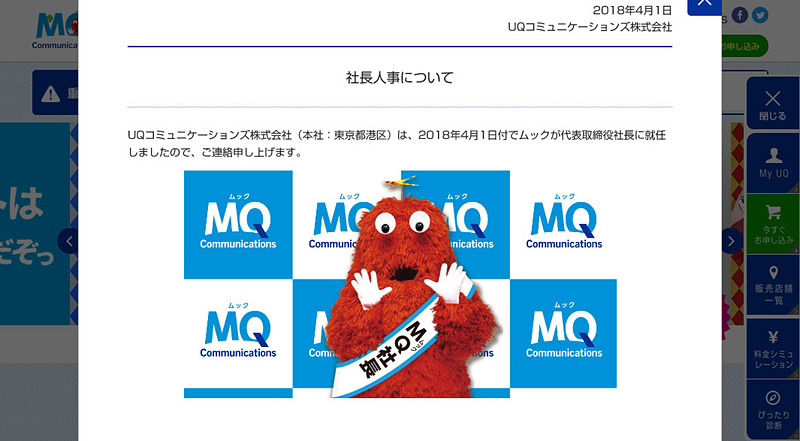 あのムックがUQ社長に就任、社名もMQ(ムック)コミュニケーションズに