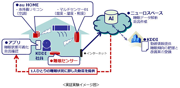 KDDIが睡眠改善の実験、IoTとスマホアプリで