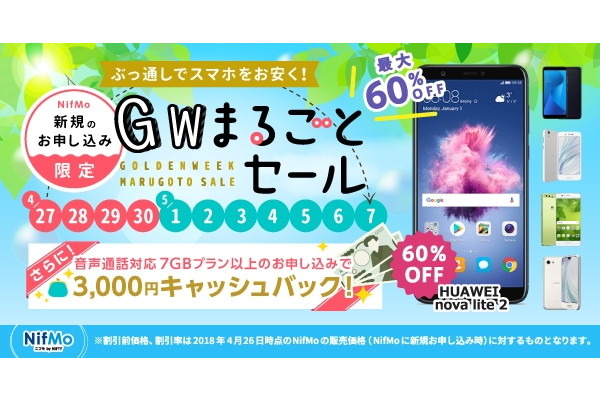 スマホが最大で半額、MVNOの「NifMo」で5日間限定セール
