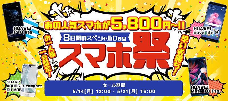HUAWEI nova lite 2が8800円、gooSimsellerで初夏のわくわくセール