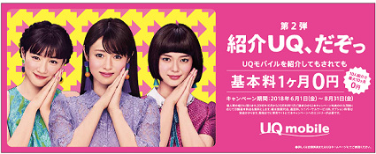 UQ、基本料が1カ月無料になる紹介キャンペーン