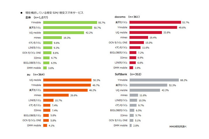 3キャリアのユーザーが検討する格安SIMはY!mobile、楽天、UQ(3/4)