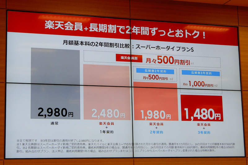 楽天モバイル「スーパーホーダイ」が長期契約の割引を拡大、かけ放題10分や24GBなど内容拡充(25/49)