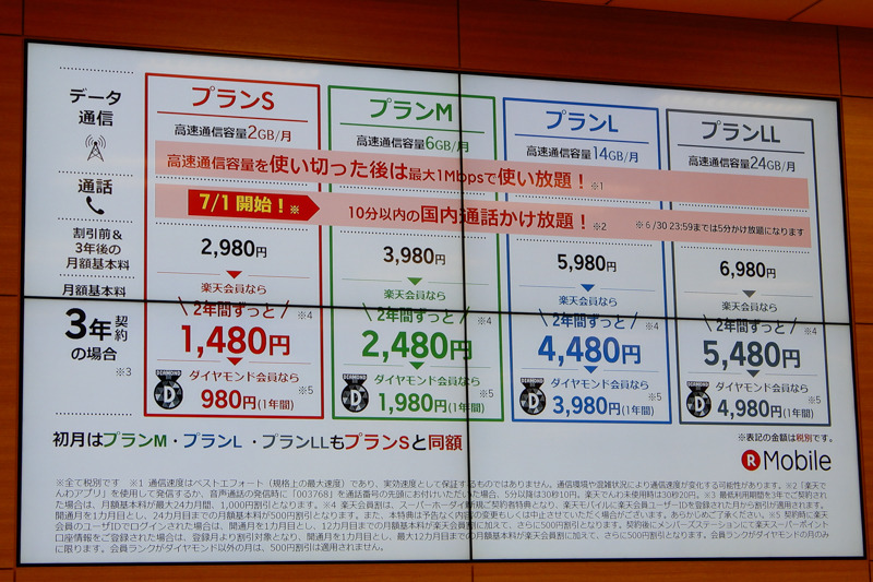 • 楽天モバイル、低速時でも1Mbpsで5分かけ放題付き「スーパーホーダイ」初年度は月額1980円から