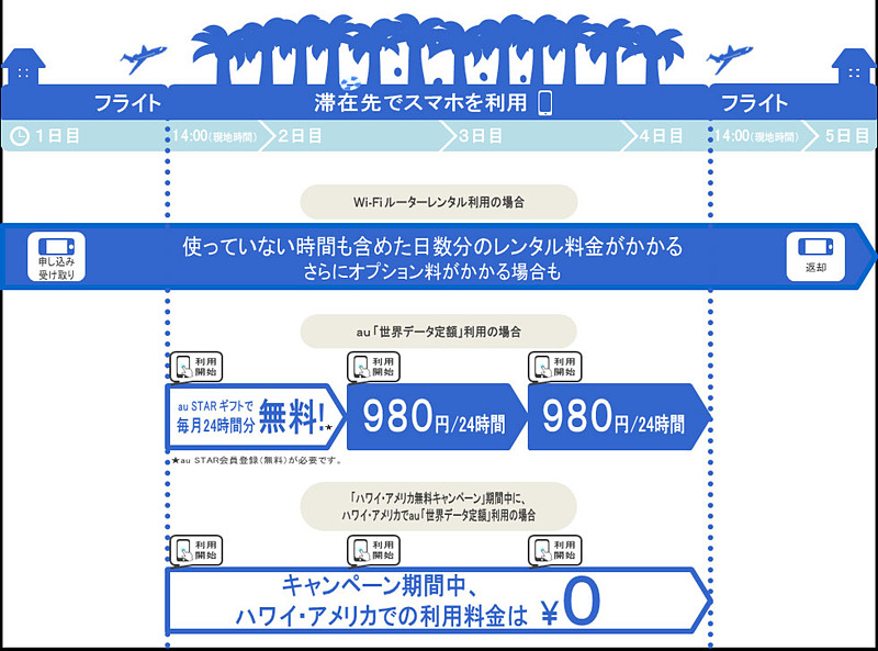 auの「世界データ定額」、8月~9月はハワイ・米国で無料に