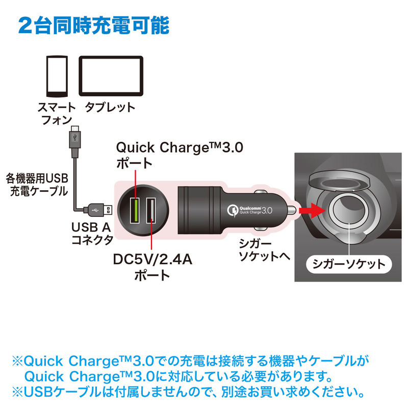 QucikCharge 3.0対応で急速充電できるカーチャージャー(5/6)