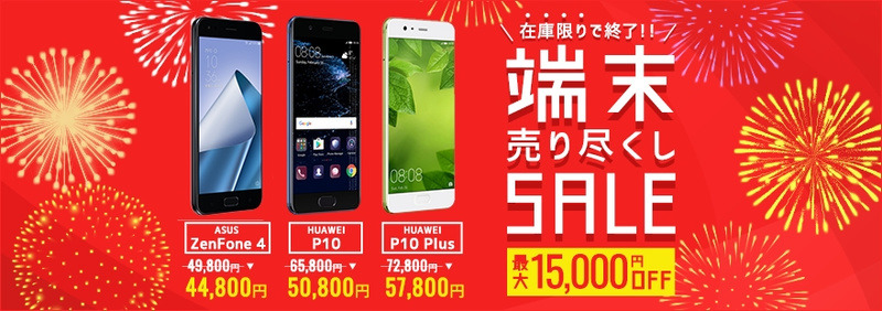 「HUAWEI P10 Plus」が1万5000円引き、DMM mobileで3機種の売り尽くしセール
