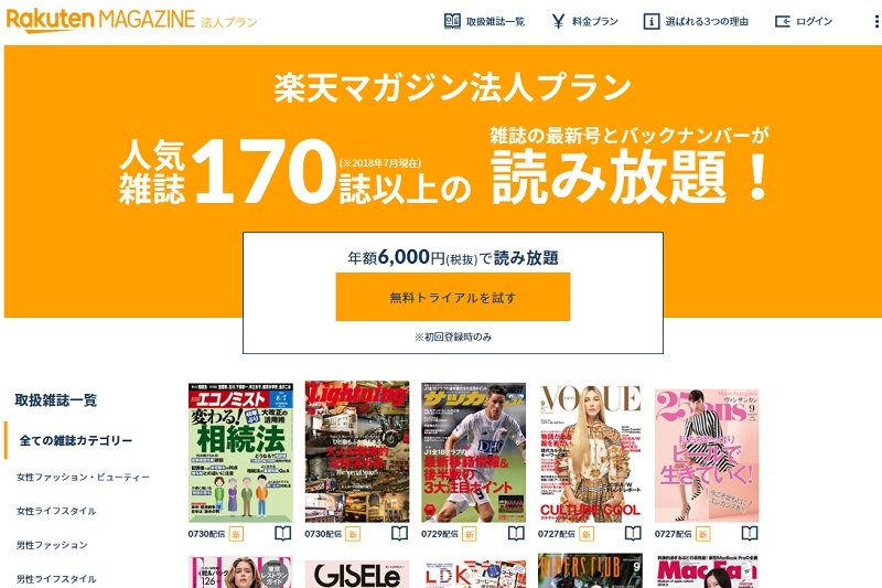楽天、電子雑誌の読み放題サービス「楽天マガジン」
