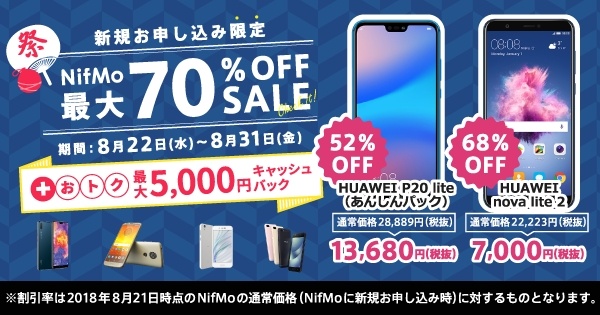 NifMoで「70%OFFセール」など3つのキャンペーン
