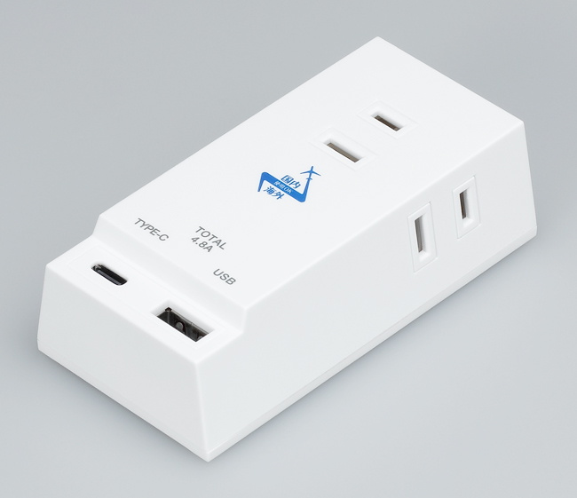 USB A/Type-Cポート搭載、コンセントタップと一体化したACアダプター