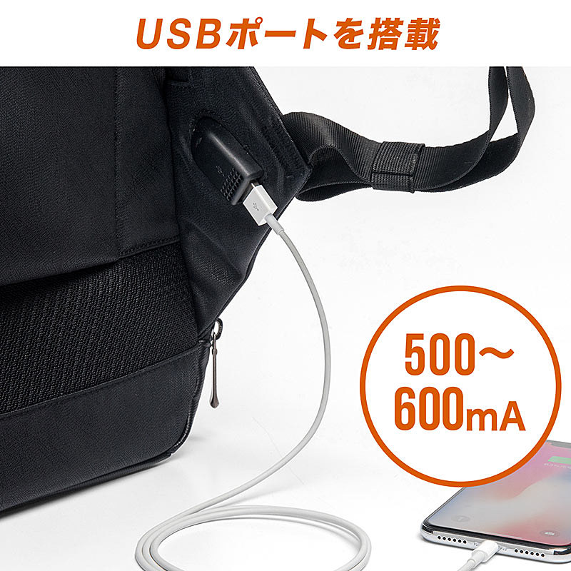 サンワサプライ、USBポートからスマホを充電できるシェルリュック(2/4)