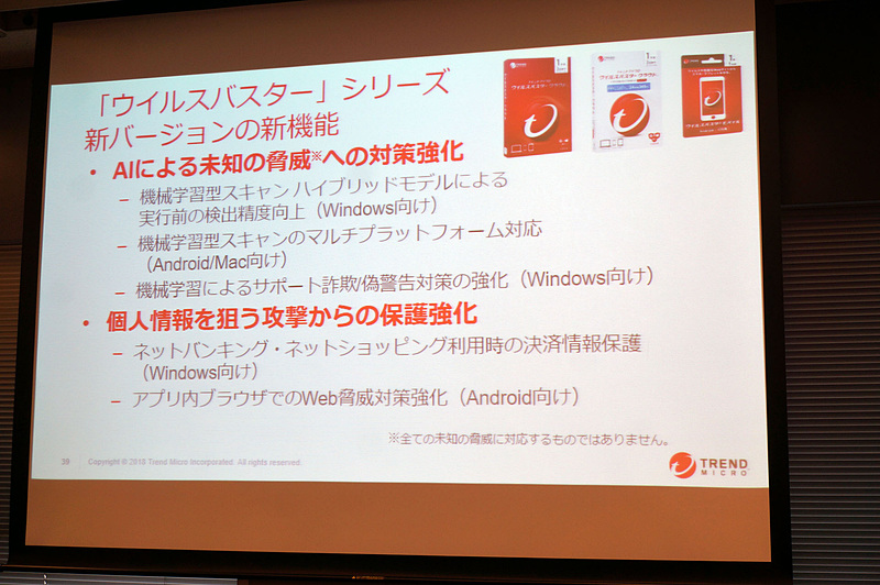 「ウイルスバスター」のAI機能、Android向けの最新版でも