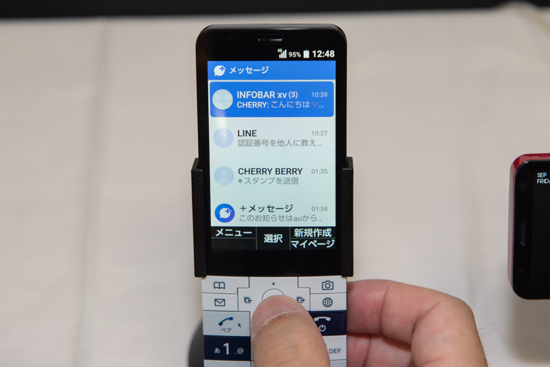INFOBAR xv、電源の入る実機が披露される(11/25)