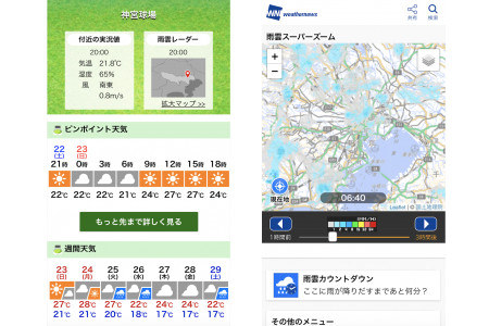 雨雲の動きを15時間先まで表示可能、ウェザーニューズのアプリ