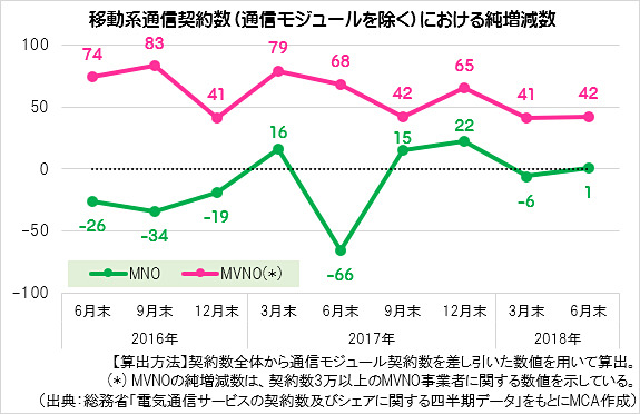 総務省四半期データから見る、MNOとMVNOの勢いの差