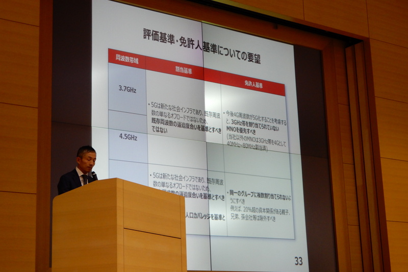 5G周波数獲得へ向けた携帯各社のプレゼンテーション