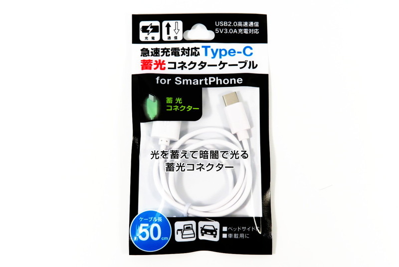 【100均で買えるスマホグッズ】Type-C 蓄光コネクタケーブル