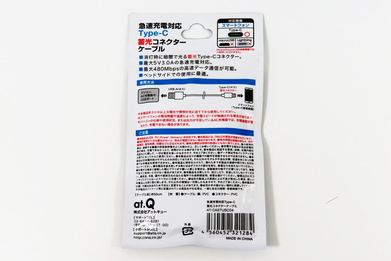 【100均で買えるスマホグッズ】Type-C 蓄光コネクタケーブル