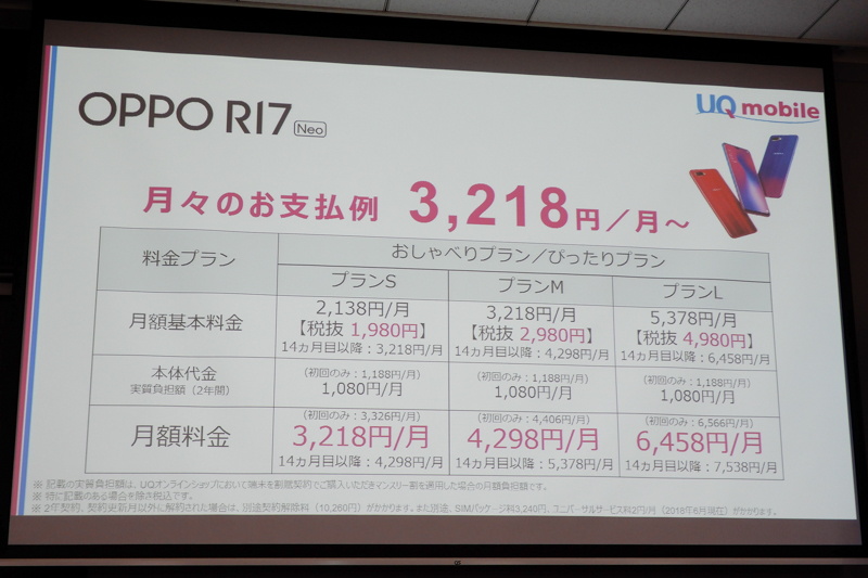 • UQ mobile秋冬モデル、OPPO「R17 Neo」や「AQUOS sense2」など発表