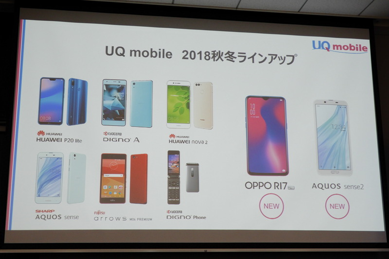 • UQ mobile秋冬モデル、OPPO「R17 Neo」や「AQUOS sense2」など発表