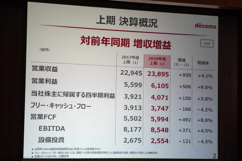 ドコモ2018年度上期の決算は増収増益、通年の業績予想も上方修正(2/40)