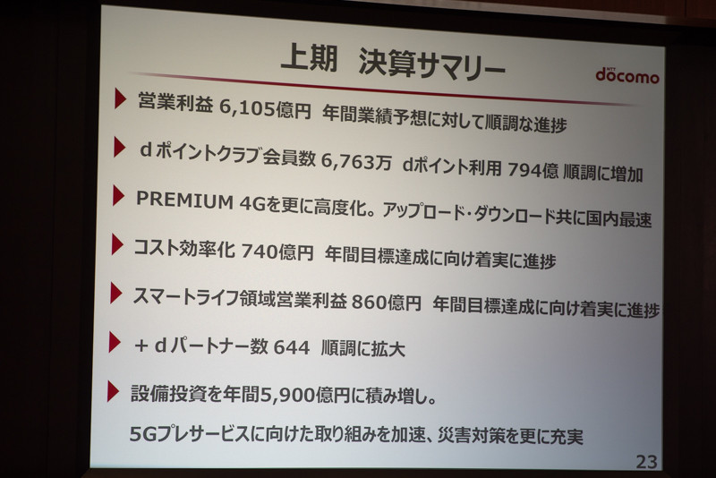 ドコモ2018年度上期の決算は増収増益、通年の業績予想も上方修正(20/40)